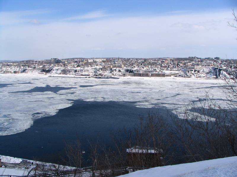 Lots of ice flowing in the river.